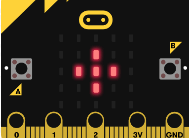 Your micro:bit will pause and the yellow LED on the back will blink while your program is being transferred. Once it’s copied across, your program starts running on your micro:bit.