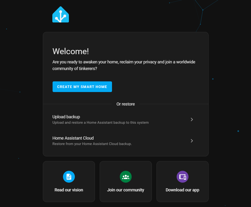 2. Power up your Raspberry Pi 5, leave it for about 5 minutes, and on your local computer in your preferred browser type in “http://homeassistant.local:8123” or use the IP Address of the Raspberry Pi that you can find using your router’s web interface and type “http://x.x.x.x:8123”