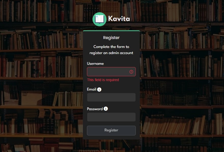 After executing that file, you can connect to Kavita using either http://localhost:5000 or http://{IP address}:5000. You’ll be greeted by a registration window to create your admin account.